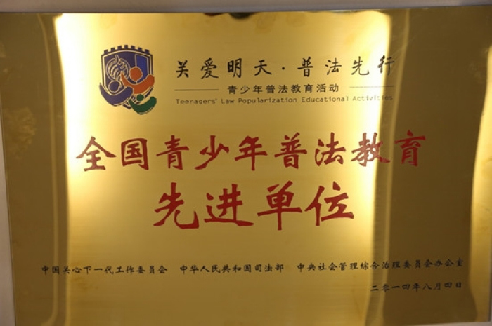 在第二届“关爱明天·普法先行”全国青少年普法教育活动中,我校因普法工作成效明显,被中国关心下一代工作委员会、国家司法部和中央社会治安综合治理委员会办公室联合授予“全国青少年普法教育先进单位”荣誉称号。 “关爱明天、普法先行”是由中国关工委、司法部和中央综治办联合开展的一项青少年普法教育活动,旨在加强青少年法律启蒙和法律常识教育,增强大中专学生的法制观念。 我校以举办第二届“关爱明天、普法先行”全国青少年普法教育活动徐州市启动仪式为契机,不断加强学校的法制宣传教育工作,拓展教育方式,多渠道开展普法宣传,积极营造有利于学生身心健康成长的安全、文明、法制的校园及周边环境;开展模拟法庭、“法制进校园”等各种活动,强化青少年普法效果,形成了适合我校特点的多元化、立体化、网络化的法制教育体系,实现了法制教育工作的制度化、规范化;使我校法制教育能持之以恒并卓有成效地开展,使学校学生法制观念得到进一步提高。 文/图 邹明