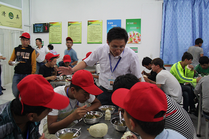 学校清真食堂专门由维吾尔族厨师为大家准备了解暑汤和香喷喷的饭菜,同学们吃的非常香。饭后,同学们按照事先分配好的宿舍,有秩序地搬入各自寝室,学校组织志愿者为每一名新疆学生铺好了被褥,准备了个人生活用品,并细心安排好带队教师的生活。
