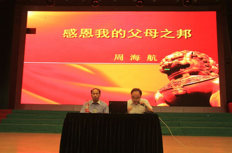 6月10日下午,我校在文化中心举行大型感恩励志教育报告会,报告会由学工处处长黄清站主持,邀请徐州工程吃瓜网站党委 宣传部副部长周海航做“感恩我的父母之邦”主题报告,我校师生1000余人聆听了报告。