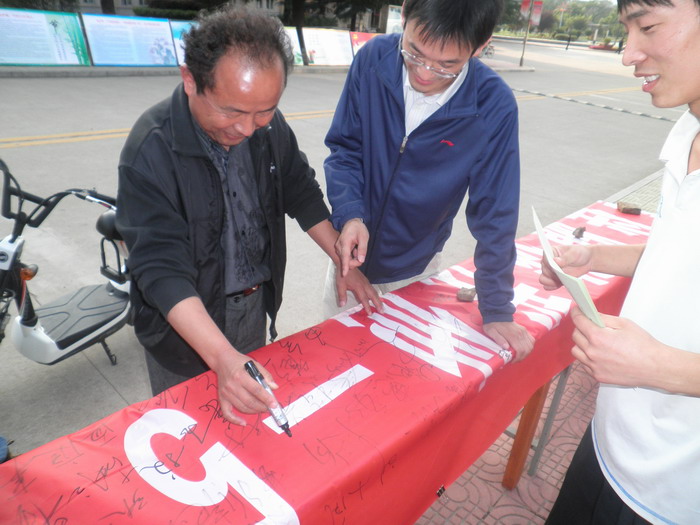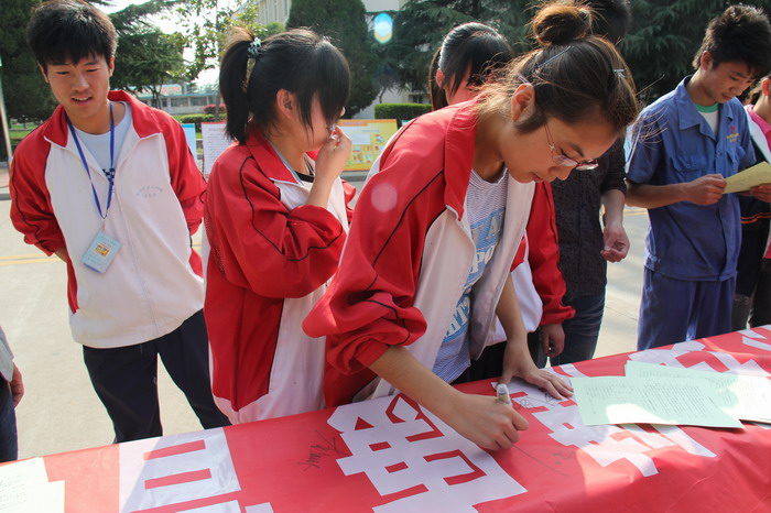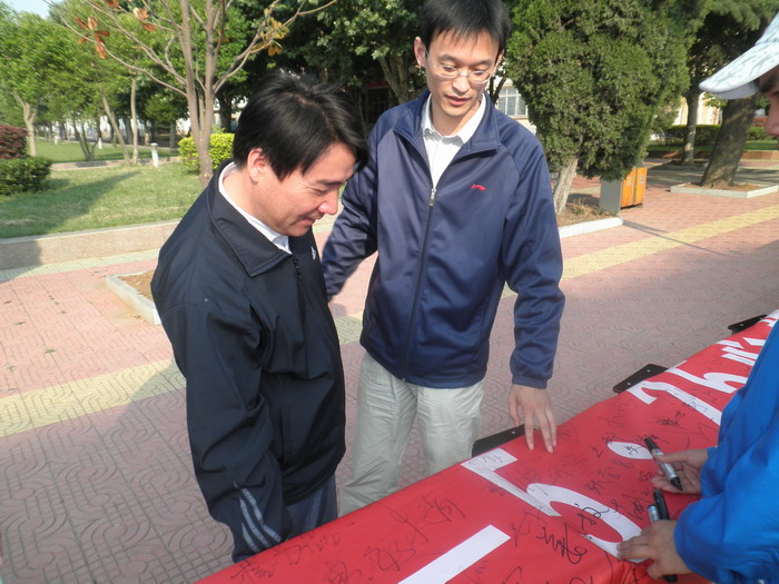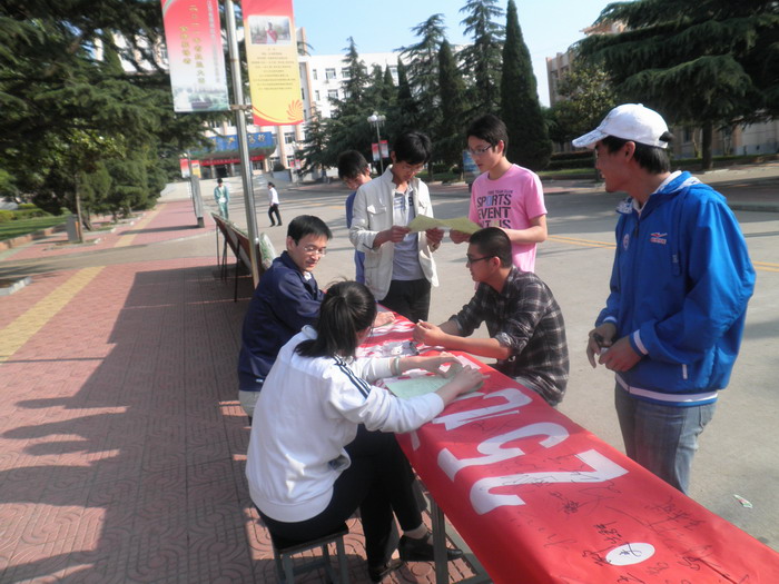 5月26日下午四点半,“让关爱伴随你我他—我校首届5·25心理健康宣传月”大型签名和现场咨询活动在我校主干道举行,我校心理咨询师马武强、丁得果和王冬萍老师亲临现场为学生解答心理困惑。老师还为到场学生发放了活动倡议书和我校心理健康教育中心宣传材料。