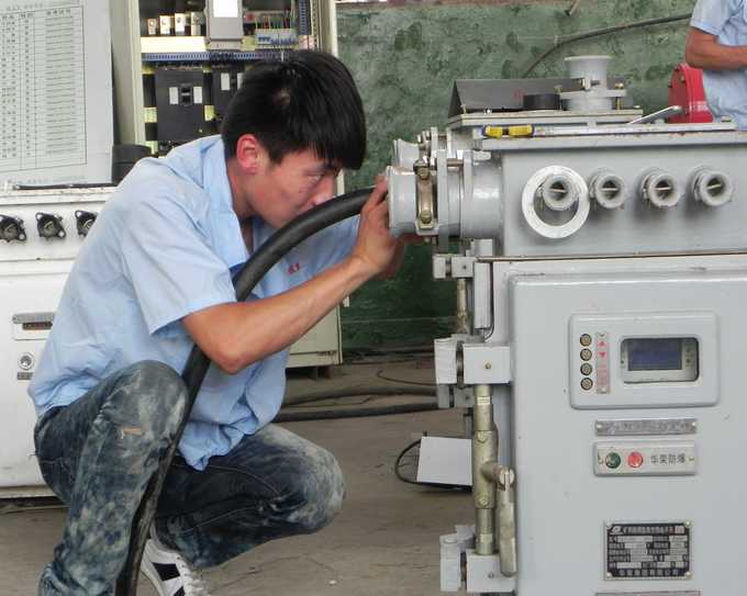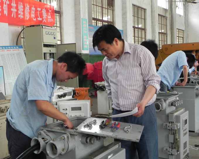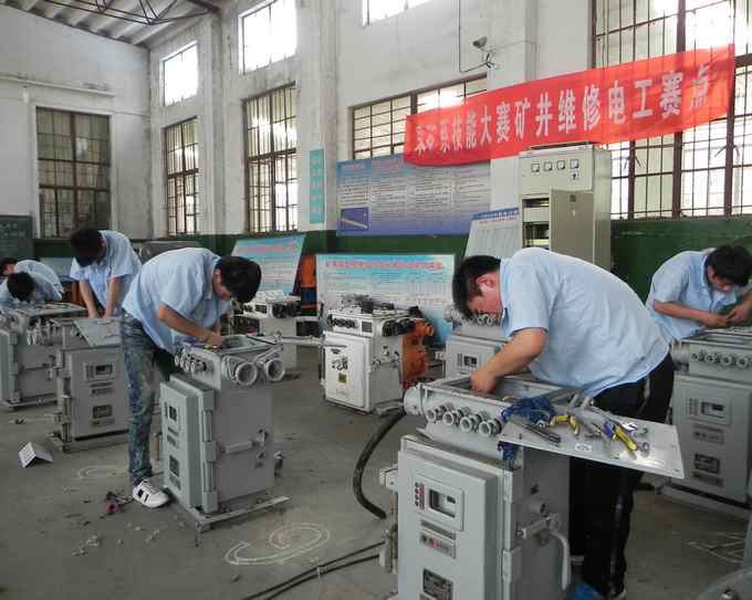 据了解,我校采矿工程系“矿井维修电工技能大赛”于6月3日上午8:00在采矿系实训基地举行,本次技能大赛各班共选派27名选手参加,评委由采矿系王庆海老师及教务张新国老师担任,考试内容为:线路连接和故障排除两项,首先王庆海老师要求选手高度重视此次技能竞赛,能够遵守技能大赛考场纪律,不得讨论,两项累加时间最短获胜,如发现作弊者取消比赛资格。比赛开始后,选手们首先用测量仪检测线路是否通电,然后进行维修、连接等操作,通电成功后,再由评委设置故障,并要求选手独立检测出故障斌维修。