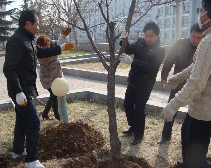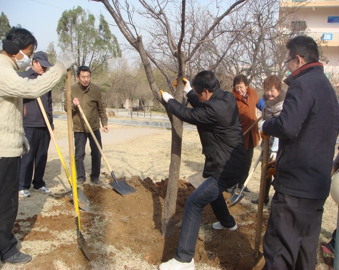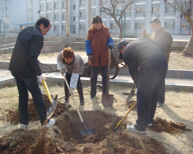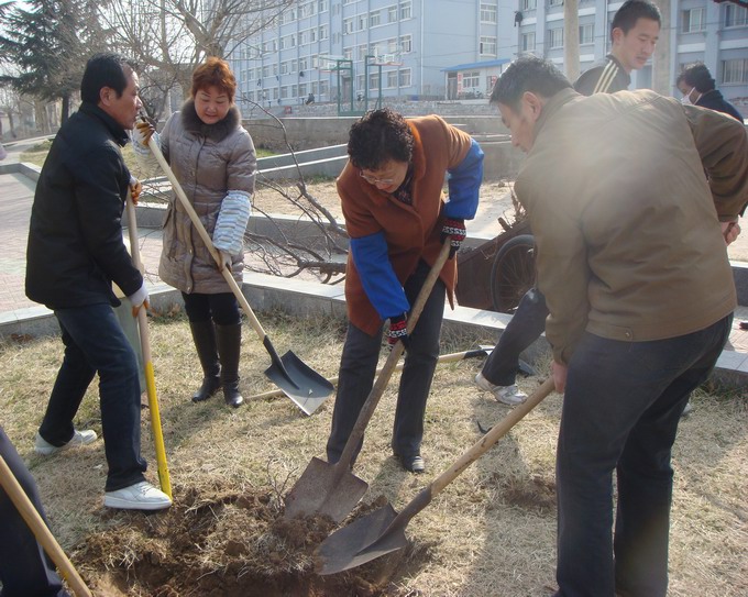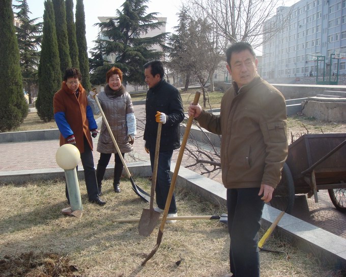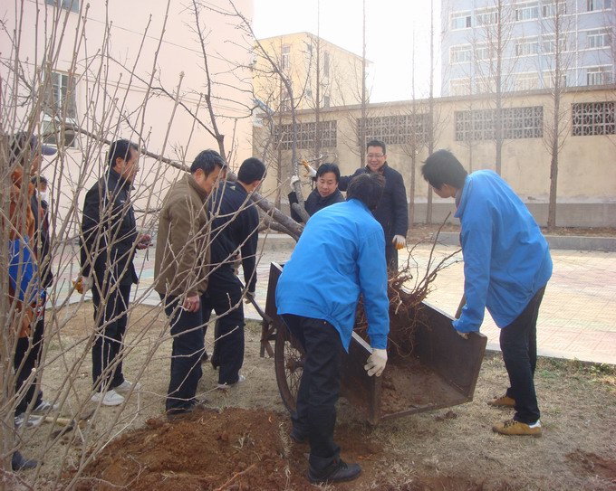 2011年3月15日,图书馆工作人员在基础部李春书记、杜宗辉主任的带领下,积极参加了校内义务植树活动。