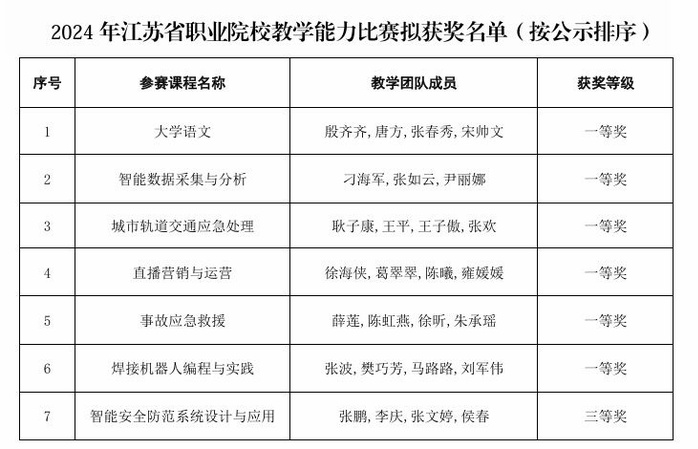 近日�2024年江苏省职业院校教学能力比赛落下帷幕。我�7支参赛团队凭借扎实的教学功底、默契的配合、稳定的发挥,喜获一等奖6项,三等�1项。一等奖获奖数创我院最好成绩,位列全省第一�