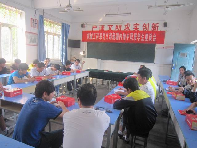 新疆内地中职班来我校学习已有一年的时间,在校党政的正确领导下新疆班的各项工作有条不紊,特别是在校党委开展的党员与新疆生一帮一结对子的活动中,机械工程系所有党员都能以身作则,积极发挥党员的模范带头作用。