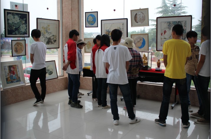 本次艺术展征集精选了50余件师生艺术作品,参展的艺术作品形式多样,有工笔人物画、工笔花鸟、素描作品、写意花鸟、漆线雕、贴金工艺、软陶工艺等。