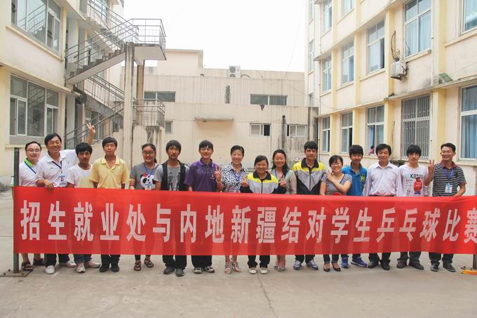 为迎接我校第四次党代会,进一步丰富内地新疆班同学们的课余文化生活,增强结对师生的情感,在招生就业处党支部、车间工会的精心组织和筹备下,2012年5月29日下午4点30分招生就业处与内地新疆班结对学生乒乓球友谊赛在教学二楼天井处隆重举行。招生就业处车间工会邀请了薛莲副校长参加了此次友谊赛。
