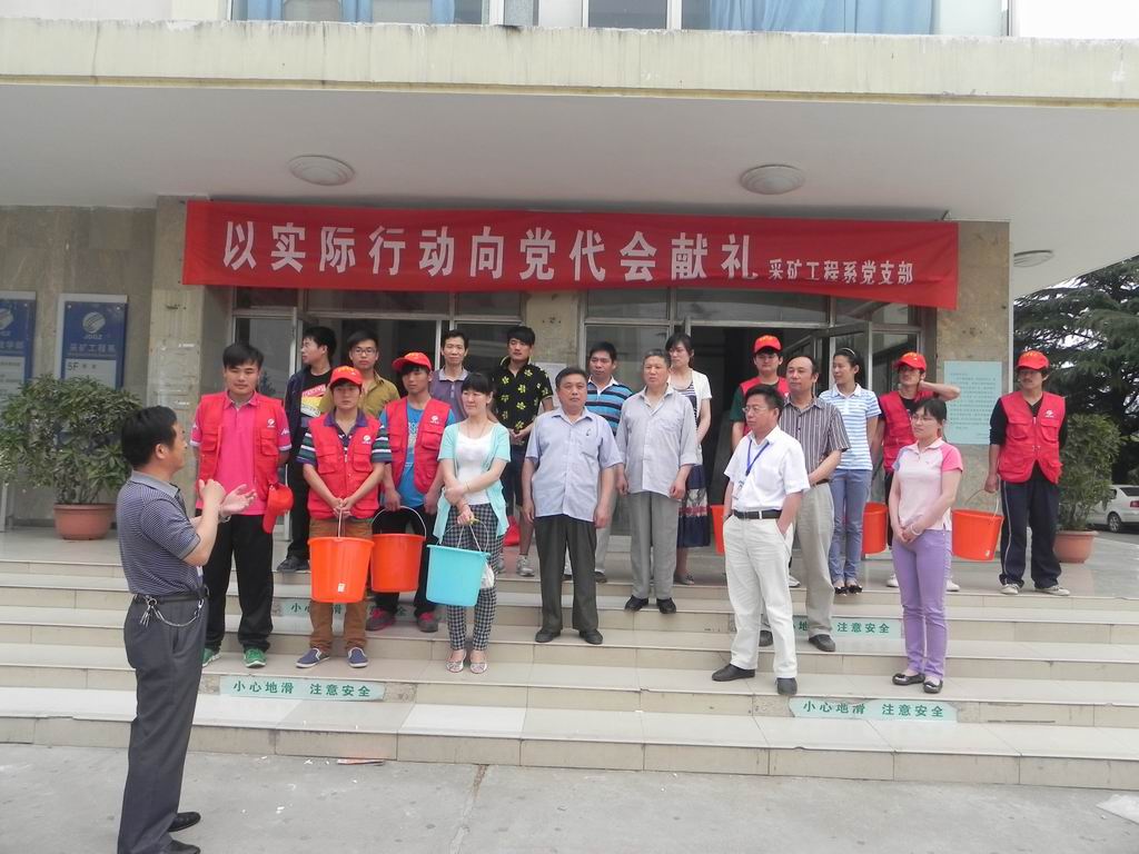 在校第四届党代会即将召开之际,采矿、培训党支部积极响应学校党委号召,深入开展向“党代会献礼”主题活动,党支部积极组织教工党员及青年团员深入开展爱党报国、爱校兴校教育,进一步激发师生员工的爱党之情、报国之志和兴校之责,以饱满的政治热情、振奋的精神状态以及踏实的工作、学习作风,迎接学校第四次党代会的胜利召开。