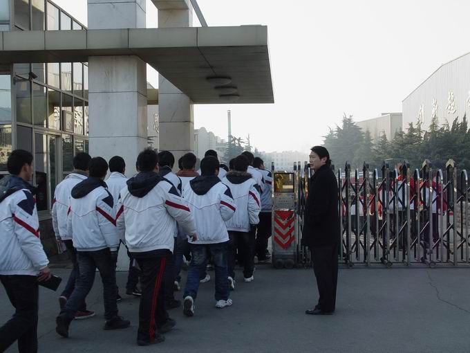 12月18日上午,我校112名焊接专业、数控专业学生排着整齐的队伍在徐工集团重型有限公司人力资源部负责人的引导下正式跨入徐工大门,开始就业实习。