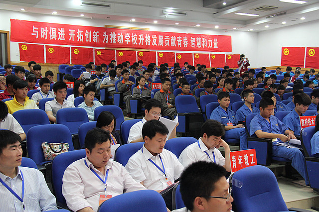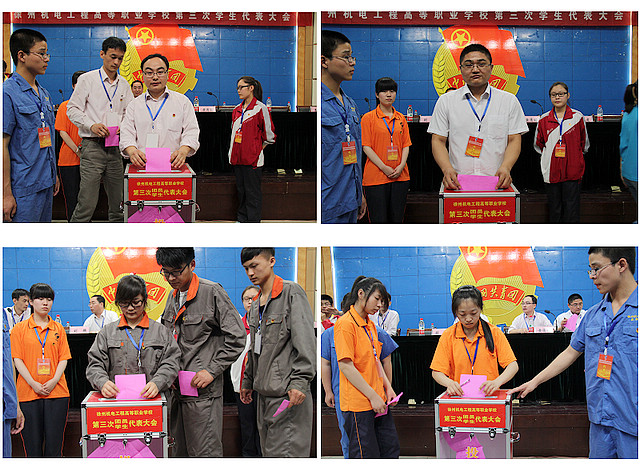 经过前期紧张有序的筹备,5月21日上午,校学术报告厅内团徽闪耀,团歌嘹亮,到处洋溢着欢快、青春、热烈的气氛,共青团江苏省徐州机电工程高等职业学校第三次代表大会暨江苏省徐州机电工程高等职业学校第三次学生代表大会隆重开幕。出席大会的领导有学校党委书记孙健身、纪委书记成伯君、校长助理王体民、团徐委学少部部长聂磊、学保处主任李志浩、宣传部副部长刘麟、校团委副书记黄清站、各系部党支部书记和学管主任。来自各系部团总支、校外实习生、青年教工等200名代表肩负着全校13000多名学生及6644名团员的重托,听取并审议了团委工作、学生会工作报告,选举了共青团第三届委员会和学生会第三届委员会。