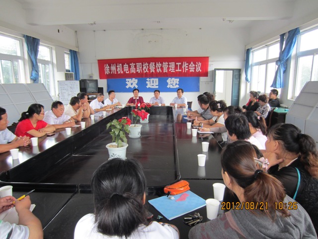 8月21日上午10:00在新疆办会议室召开关于后勤餐饮管理会议,参加会议的有贾汪校区和云龙校区所有食堂承包人和餐饮中心的全体员工。