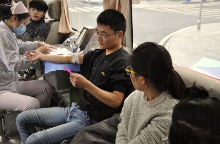 上午9点,徐州市红十字血液中心的献血车开进了校园,广大师生纷纷加入到献血的队伍中来,在采血车前排起了长龙。按照医务人员的要求,师生们认真填写了献血信息表,进行血样采集和身体检查,认真听取医生讲解献血过程中应该注意的事项。云龙校区师生听说贾汪校区正在组织开展无偿献血活动,积极响应,在汽车工程系党支部书记马学建的带领下,来到贾汪校区,加入到无偿献血的队伍中去。体检后,符合献血条件的师生陆续登上献血车开始献血,殷红的鲜血顺着导管流进了储血袋,师生们的脸上洋溢着灿烂的微笑,为自己献出的爱心与热情而感到自豪。献血活动持续到下午5点半结束,广大师生踊跃报名献血,经过体检,153人参加了献血活动,总献血量47600毫升。其中,数控技术系14高技班全班共31名学生,26名符合献血条件的学生全都报名参加了献血。面对这一数据,血液中心的工作人员都纷纷竖起了大拇指,对我校师生再次提出表扬与赞叹。“秋冬交季,心脑血管疾病患者病发增多,各校的无偿献血,有效缓解了血库告急的压力。”血液中心工作人员告诉记者。