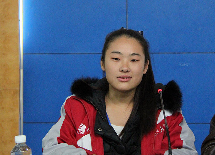 图为记者团新成员代表发言