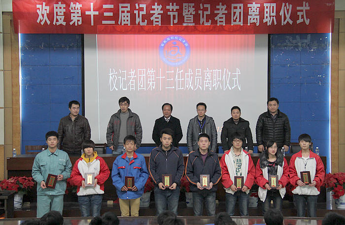 值第十三个记者节到来之际,我校记者团于11月12日举行欢度第十三个记者节暨第十三任记者团成员离职仪式。我校工会主席宣传科科长陈忠华、工会副主席宣传科副科长刘麟出席活动,校办公室郝允龙、工会宣传科王朔、刘念东、蒋栋、路旭、耿刚及校记者团全体成员参加活动。