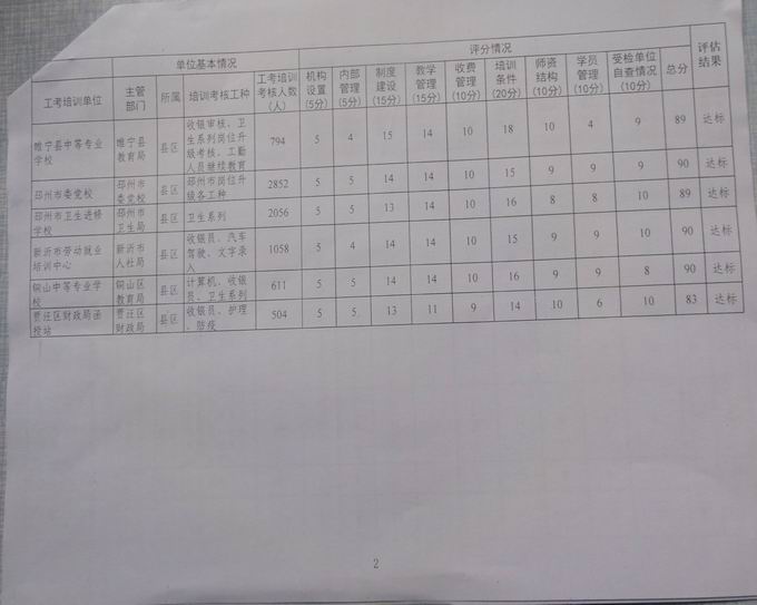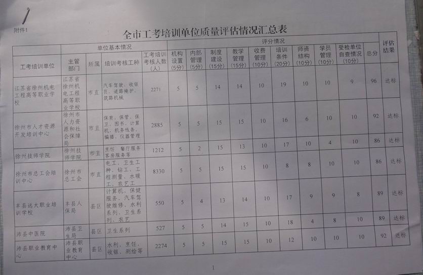 本次评估检查共有徐州市区及各县的13家单位,主要从培训人数、机构设置、内部管理、教学管理、收费管理、培训条件、师资结构、学员管理等方面进行检查,我校凭借扎实细致的工作,得到评估专家的一致好评,获得了96分的好成绩,位居13家培训单位之首。