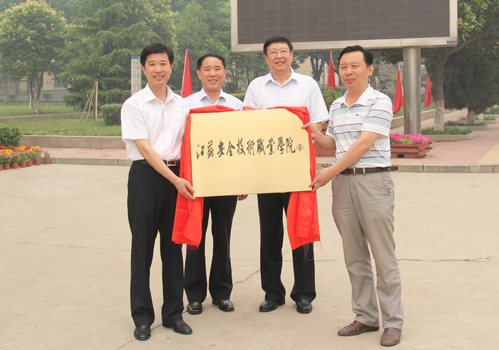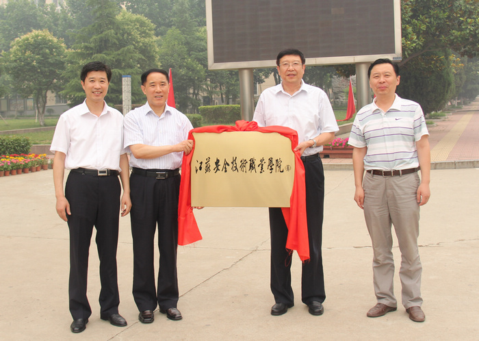 江苏省安监局局长王向明和江苏省教育厅副巡视员步锦昆为学校揭牌