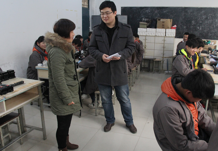 3月9日早晨,努尔兰等7名内地新疆中职班同学来到电气工程系跟班学习。这7名同学的汉语言和专业课成绩都处于较好水平,为了让他们学到更多的专业技能,根据安排他们分别到电气工程系14高职机电一体化1班和2班跟班学习机电类理论及基础课程。
