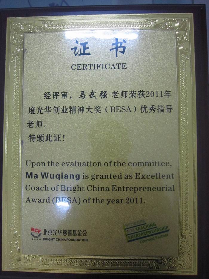 马武强老师获2011年度光华创业精神大奖优秀指导老师↑