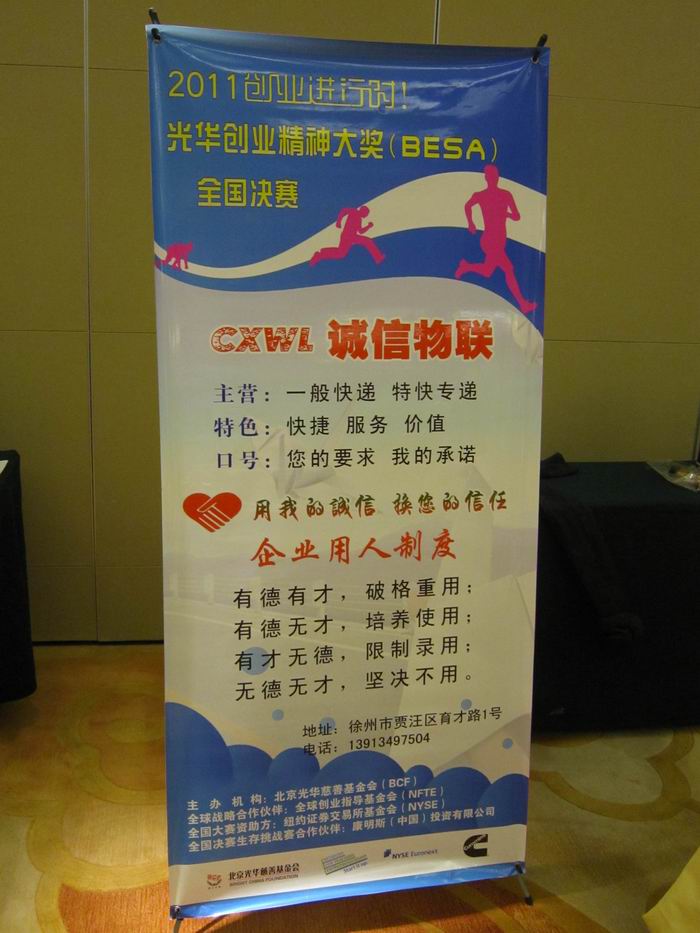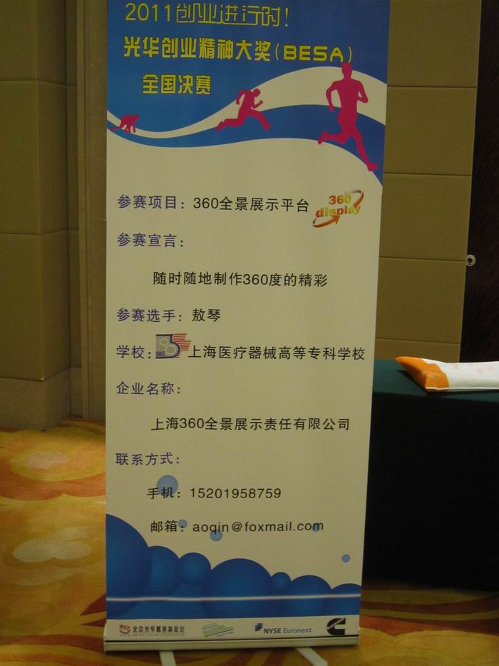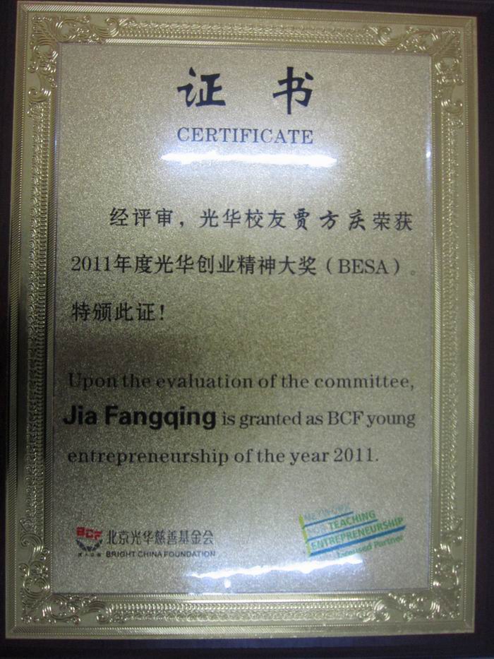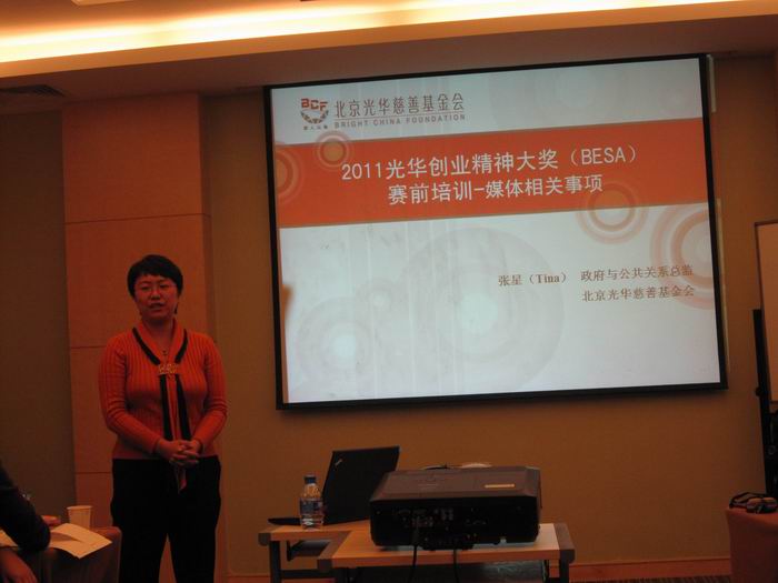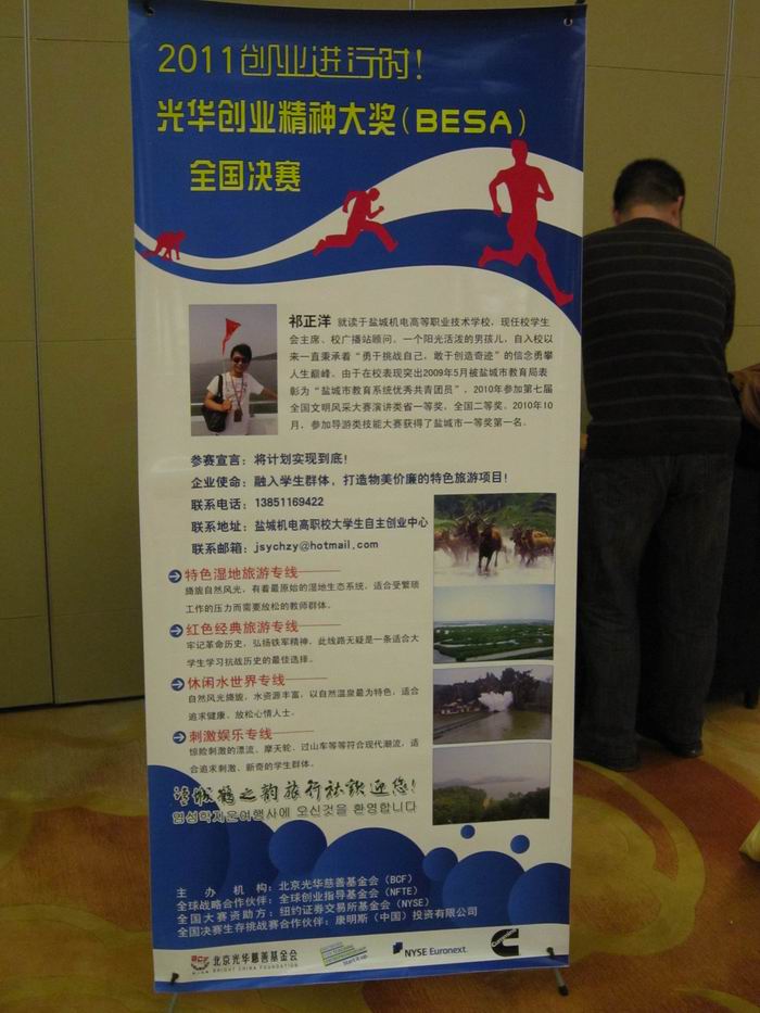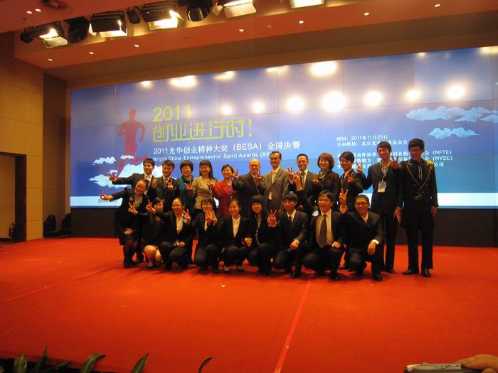 2011年度全国光华创业精神大奖(BESA)全国决赛由北京光华慈善基金会主办、各地教育系统合办,战略合作伙伴为全球创业指导基金会和康明斯(中国)投资有限公司,资助方为纽约证券交易所,参赛选手均为全国各地接受光华创业教育的校友。与以往不同的是,今年的赛事要求选手的商业项目至少经营6个月以上。