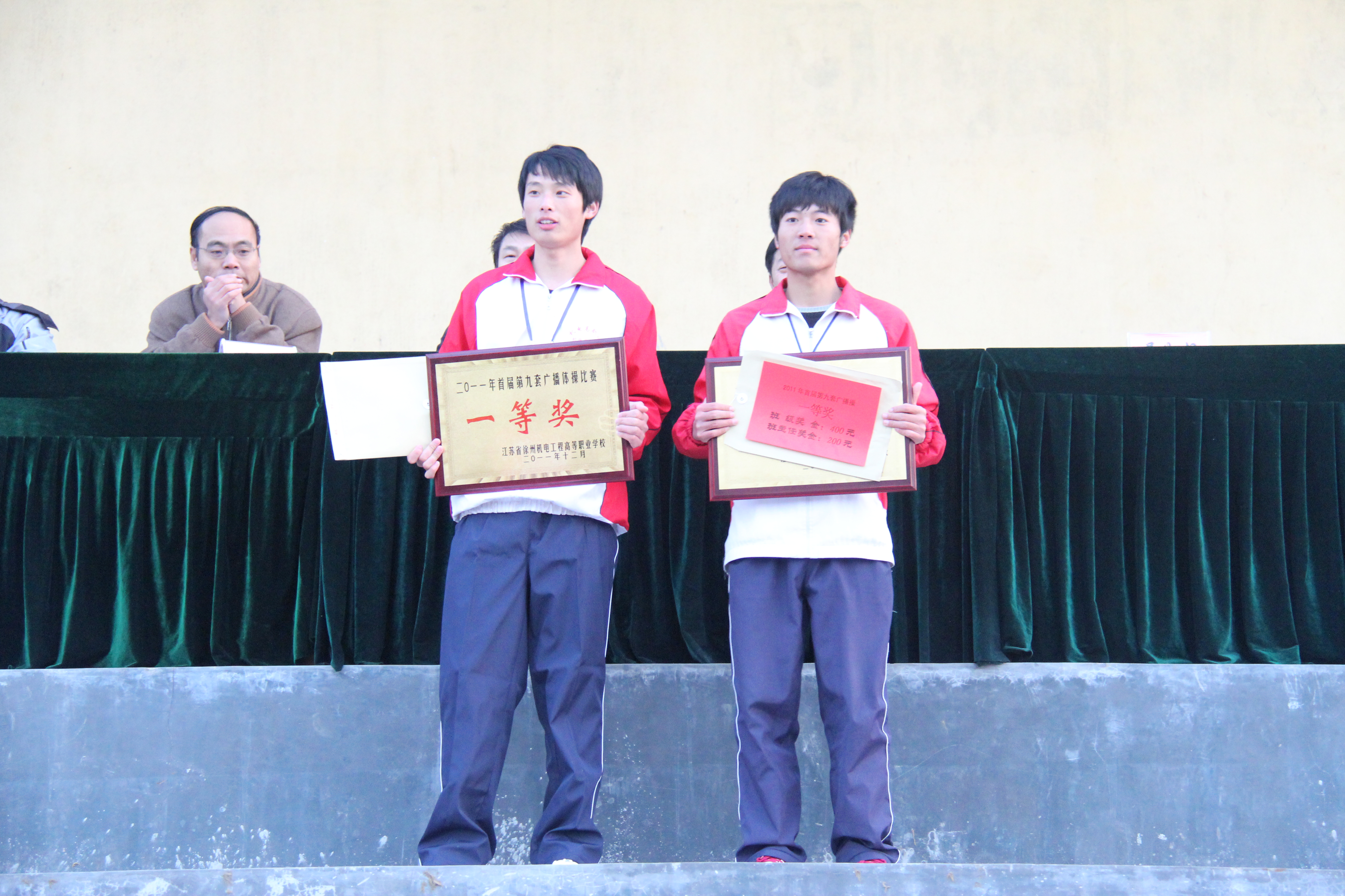 伴随着欢快、激昂的广播操旋律响起,各班的学生排着整齐的队伍,按顺序依次出场比赛。各班的学生赛前在队形、进出场、做操等方面进行了认真准备,比赛中大家精神抖擞,队列整齐有序,动作准确、合拍、到位。轻盈的体姿、整齐的动作、优美的弧线,充分展示出青少年的蓬勃朝气和青春活力。经过近一个小时的激烈角逐,评出一等奖二个班级:09高职软件班,08高职电气班;二等奖四个:11级高职安全技术管理班,11高职焊接2班,11高职数控5班,09高职焊接班;三等奖六个:09高职机电2班,09高职机电1班,09高职模具班,11机电(3+2)1班,11高职数控6班,10高职焊接班。