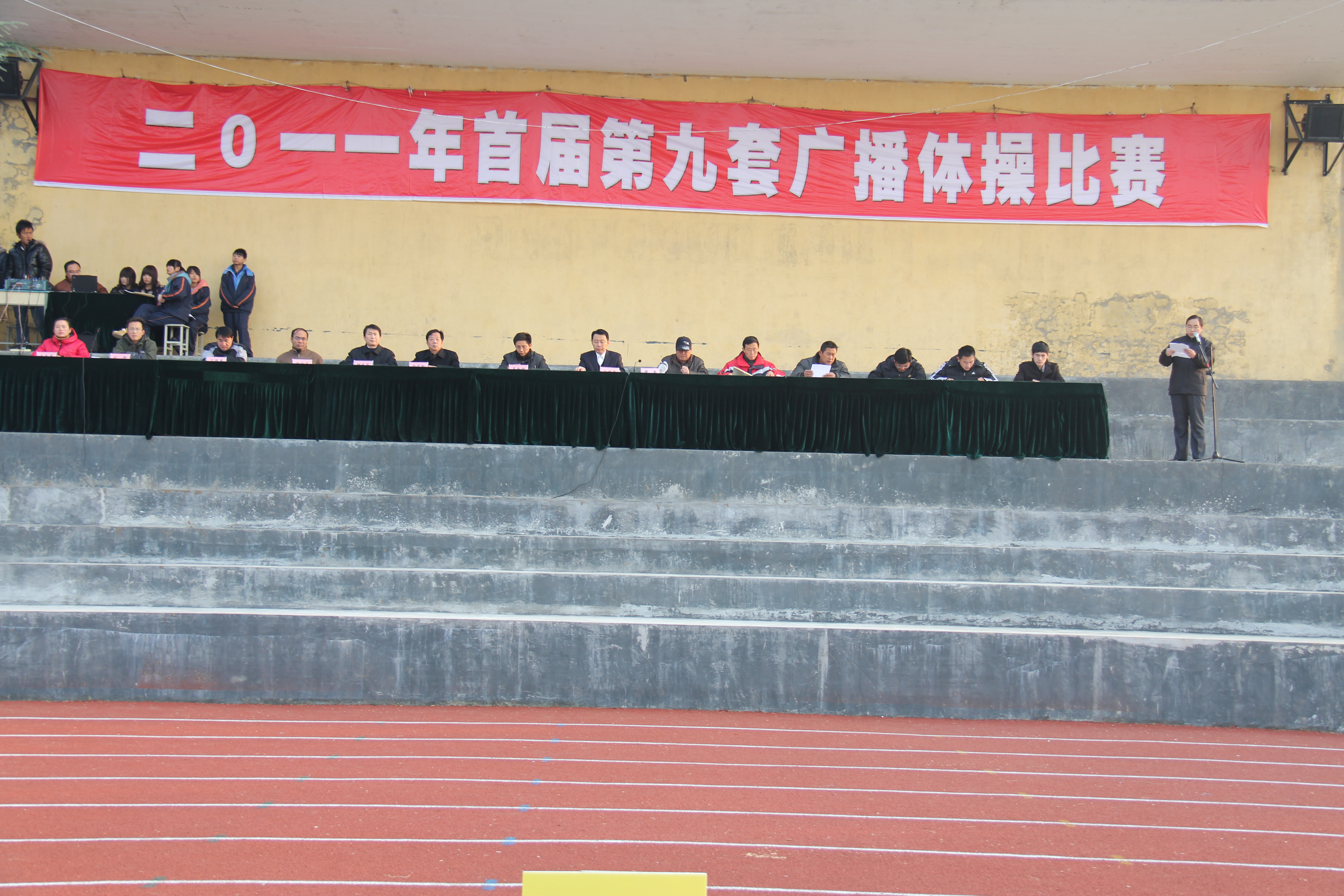 赛前,校党委书记孙健身同志发表了热情洋溢的讲话。孙书记指出:我校各系学生欢聚在一起,举行首届第九套广播操比赛,是各个班级集体力量、团结、健康、向上的一次展示,也使青春活力的一次大检阅;并希望同学们本着“友谊第一,比赛第二”的体育宗旨,把这次比赛当做一次团结的盛会,拼搏的盛会,要在比赛中赛出优良的风格,最好的水平和最佳的形象。