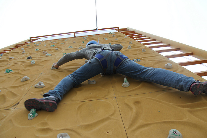 图为教职工挑战攀岩项目剪影