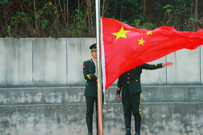 张东良、李桂萍为军训团授旗,部队领导为军训营授旗�