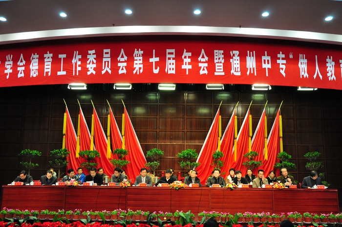 12月13日上午,江苏省职教学会德育工作委员会第七届年会暨通州中专“做人教育”现场会分别在通州区会议中心、通州中专举行。我校作为江苏省职业教育德育特色学校代表之一,在学校纪委书记成伯君的带领下,团委副书记黄清站、学管主任陈斌、金华、杨晓君、宋兴元一行参加了此次德育现场会。出席本次会议的领导有江苏省教育厅职社处主任尹伟民、秘书长王秀文、江苏省德育工作委员会副秘书长李国龙等领导出席了本次会议。参加此次现场会的还有来自全省各职业院校的370多名代表。