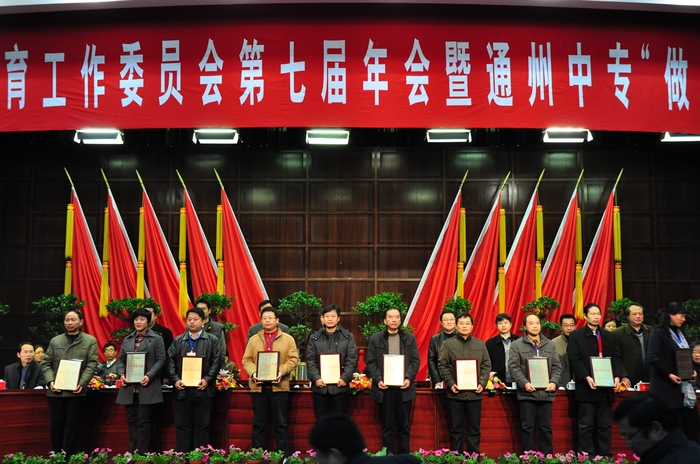 12月13日上午,江苏省职教学会德育工作委员会第七届年会开幕式在通州区会议中心举行。在通州区领导、南通市教育局领导致辞之后,会议进入了激动人心的时刻——江苏省职业教育德育特色学校表彰。我校纪委书记成伯君作为此次表彰的代表上台领奖。