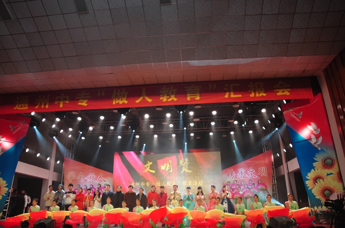 在主题教育课观摩之后,参会领导与代表观看了通州中专“现代文明人典型”颁奖文艺演出。