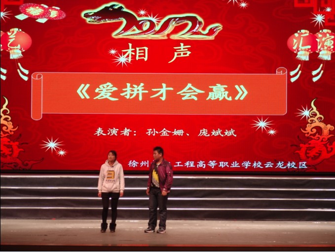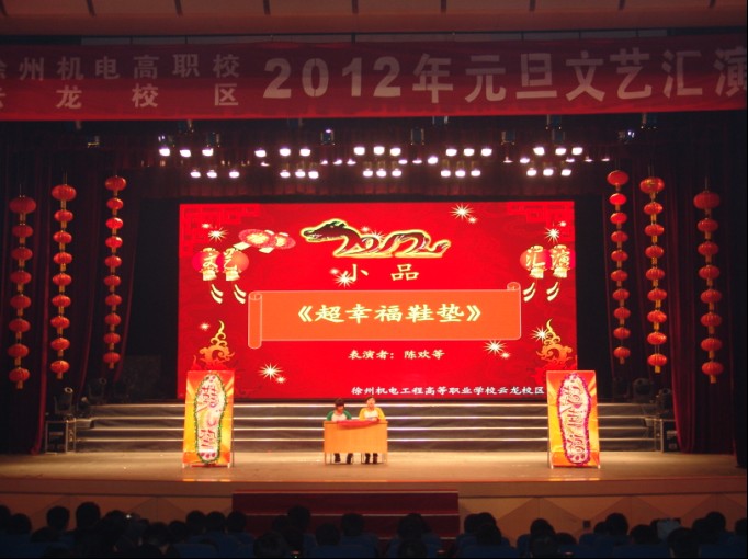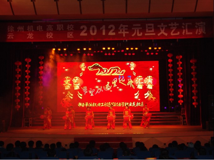 值此辞旧迎新之际,徐机高职校云龙校区迎来了一场集歌曲、舞蹈、乐器、武术、相声、小品于一体的大型视听盛宴。 12月25日下午,由云龙校区主办的“希望从这里起飞”2012元旦晚会在工程兵指挥学院大礼堂隆重举行,1000多名师生们其乐融融,共聚一堂,喜迎新年。
