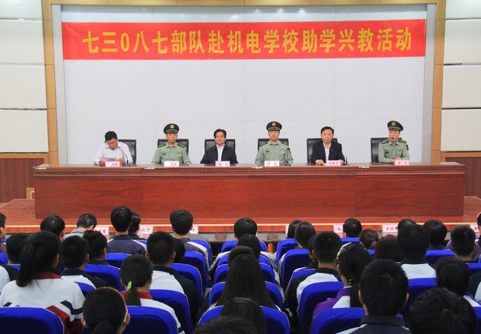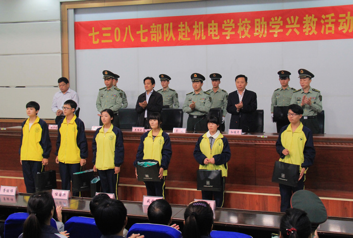 10月16日,七三〇八七部队来校开展“助学兴教”活动,捐赠仪式在B2楼学术报告厅举行。本次活动中,七三〇八七部队向我校贫困学生捐赠冲锋衣200件。