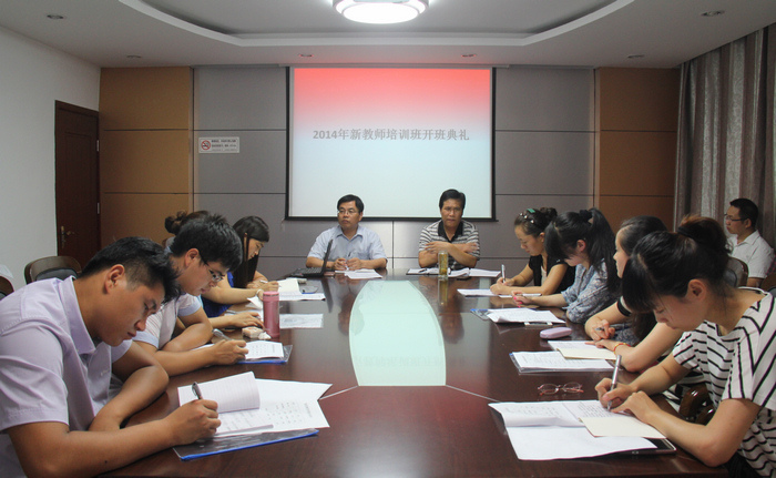 8月5日,学校在办公楼二楼西会议室举行2014年新教师培训开班典礼。副校长邓守林向新教师简要介绍了学校的历史沿革与发展情况,并就培训工作对新教师提出几点要求。14名新教师分别做了简单的自我介绍,郭杨子同志作为新教师代表作表态发言。校长助理、组织人事处处长王体民主持会议。