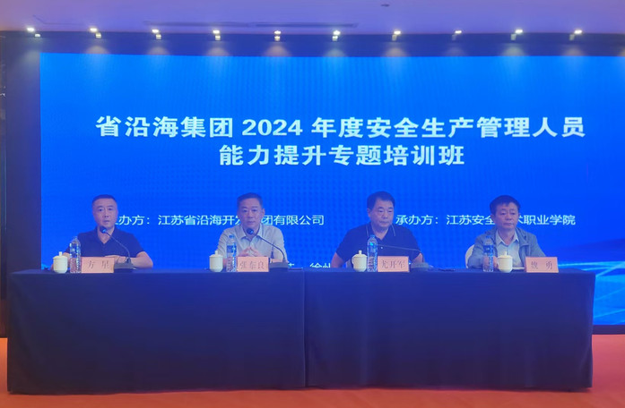 9�24日,由江苏省沿海开发集团有限公司主办,学院承办�2024年省沿海集团安全生产管理人员能力提升专题培训班顺利开班。省沿海集团副总经理、党委委员尤开军,学院党委书记张东良、副院长魏勇出席开班式�