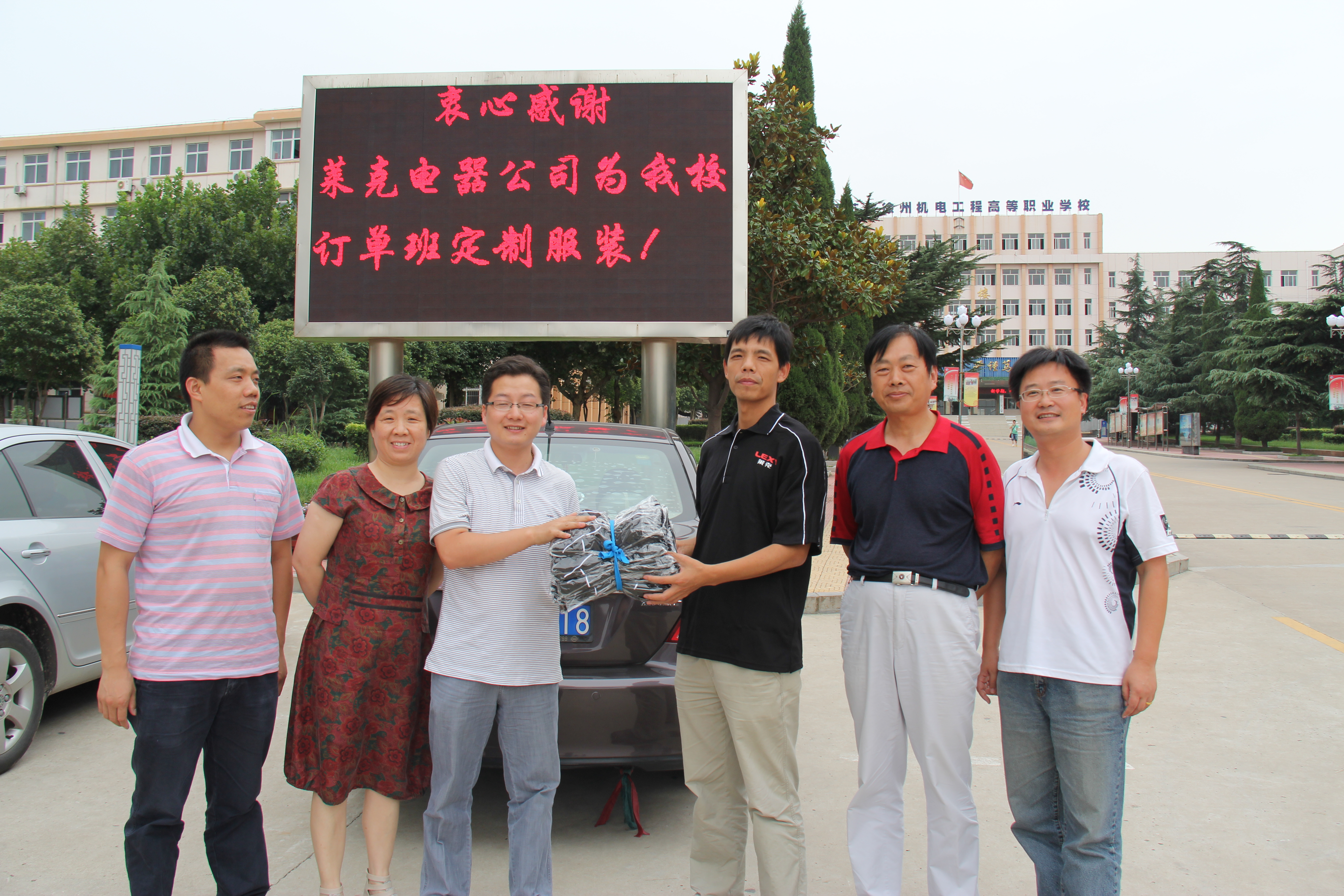 9月2日下午,莱克电气(苏州)有限公司免费为“莱克电气”订单班赠送制服仪式分别在校本部和云龙校区二部进行。校分管领导严建华副校长、云龙校区二部领导、数控系、电气工程系、招生就业处主要领导、班主任和部分学生参加服装赠送仪式。