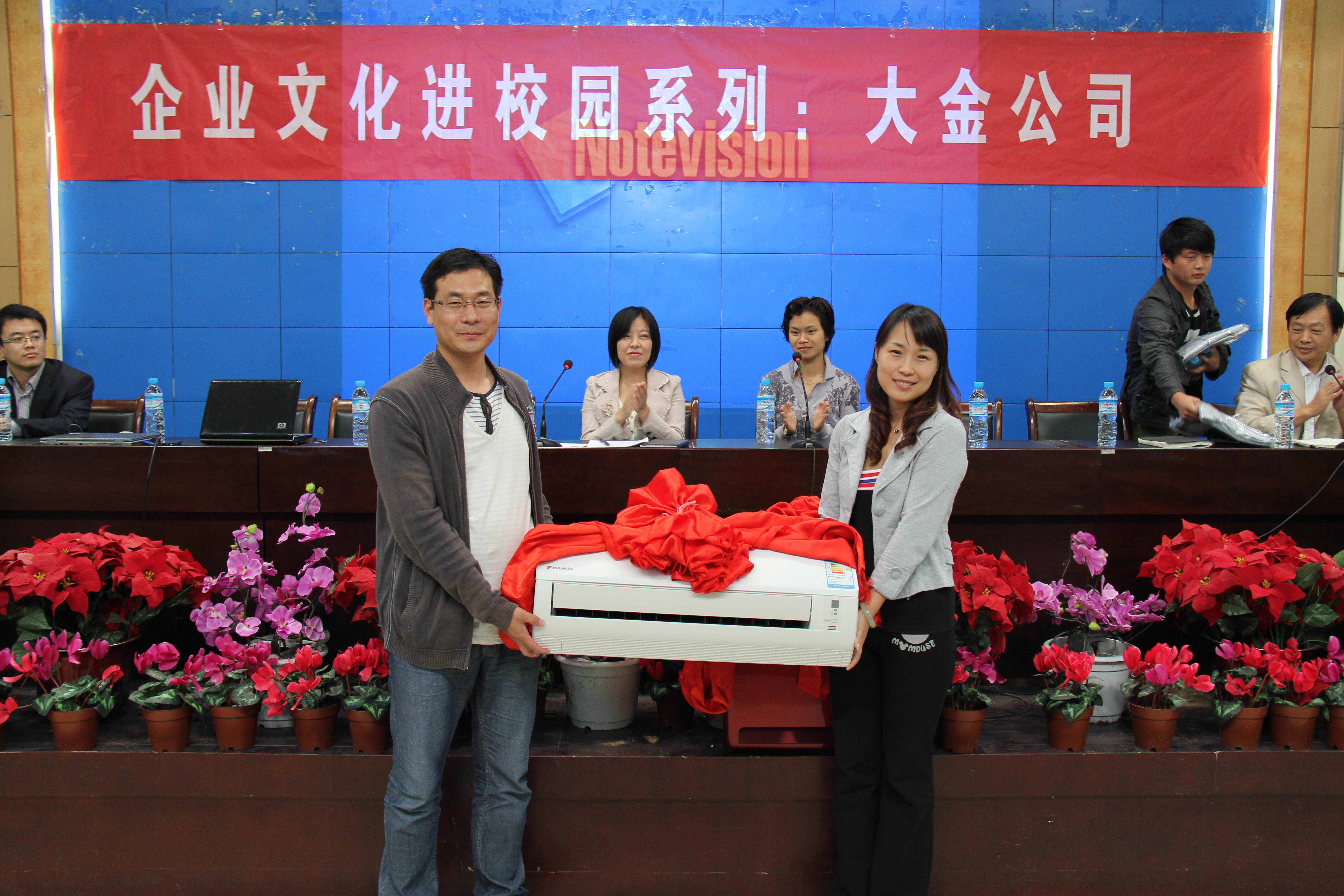 2011年10月12日,大金上海公司人事课刘晓萍副课长、制造部金春花主管、苏州大金机电设备有限公司人事课何颖副课长、制造部高新放主任一行四人,带着对江苏省徐州机电工程高等职业学校2011级订单班学生的期望,带着大金中国公司领导的重托,专程来到我校,举行订单班开班仪式。