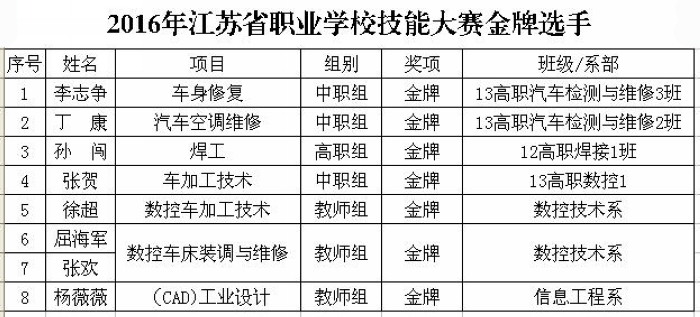 据来自我校2016年江苏省职业学校技能大赛各参赛队消息:我校参赛师生不畏强手,奋力拼搏,捷报频传。截止到目前为止,我校选手共夺得7金28银18铜。