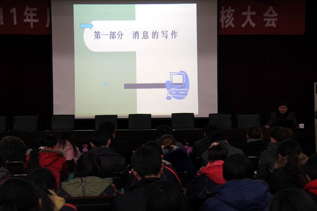 邵主任主讲了有关消息的写作知识。邵主任形象生动的讲解让听讲座的广大师生受益匪浅,大家纷纷表示这样的讲座让自己收获颇丰,不仅提高了自己的写作能力,开阔了视野,增长了见识,更认识到自己的不足,在今后的工作中要更加努力,为成为一名合格的通讯员奠定坚实的基础。