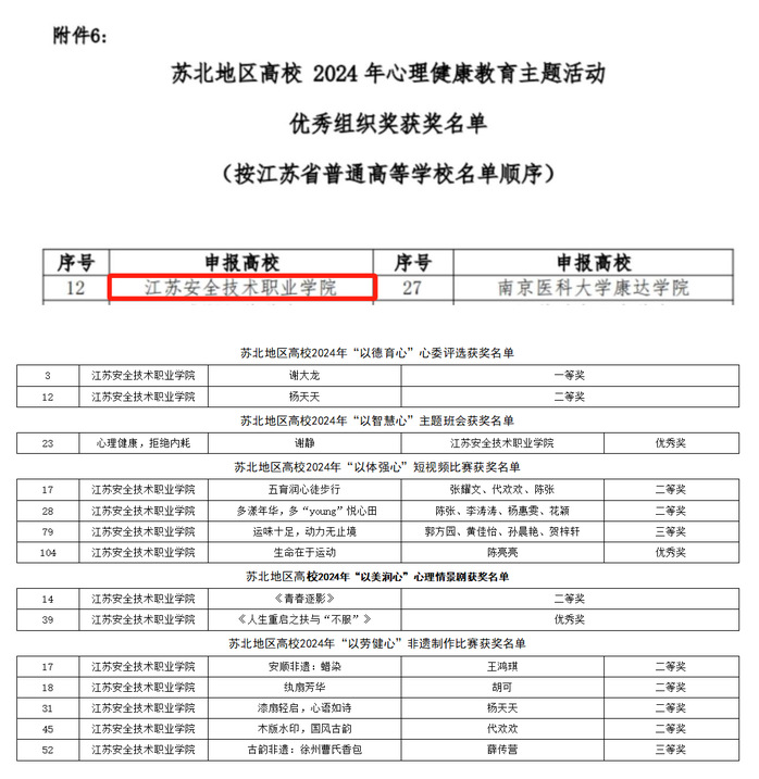 近日,苏北地区高�?/span> 2024 年心理健康教育主题系列活动竞赛落下帷幕。学院认真组织,积极申报参赛,荣�?/span>2024年心理健康教育主题活动优秀组织奖,选送的14件作品分别获得一等奖1件,二等�?/span>7件,三等�?/span>2件,优秀�?/span>3件�?/span>