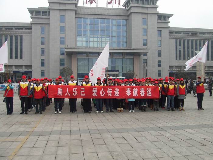 自从今年一月初我校接到团市委《徐州2012年铁路青年志愿者招募倡议书》后,团委就积极配合,认真准备,招募了近百名优秀学生参加此次活动。校长助理、工会主席成伯君在春节期间还专门看望了奋战在第一线的青年志愿者,今年我校青年志愿者高质量的完成了团市委分配的任务,通过此次实践活动不仅锻炼了学生,还扩大了学校的影响,为我校增添了荣誉。
