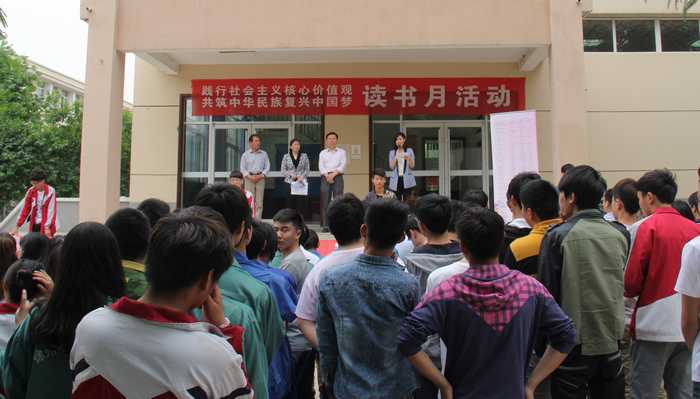 学保处处长杨晓君宣读了学校《“践行社会主义核心价值观 共筑中华民族复兴中国梦”读书月活动方案》。数控系江天赐同学作为学生代表上台发言。参加启动仪式的全体同学进行了签字活动。校宣传部长工会主席陈忠华、基础部党支部书记图书馆负责人马雪萍等师生二百余人参加了活动。