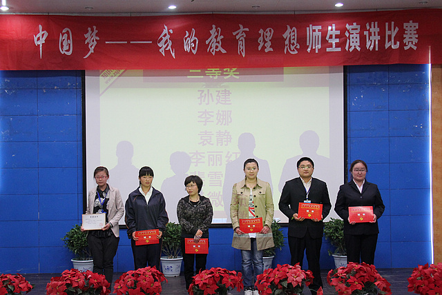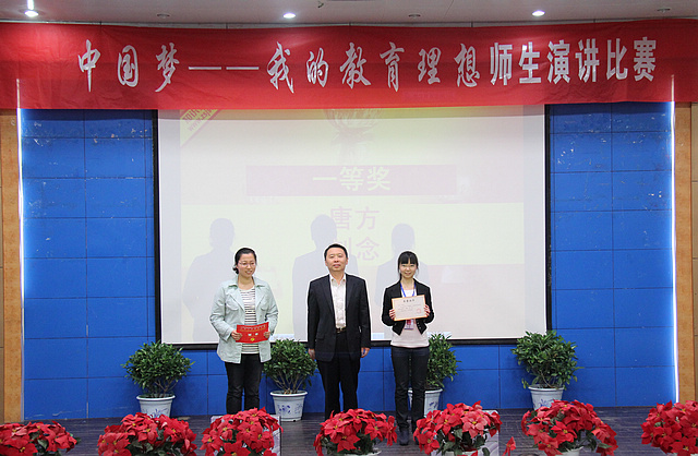 校领导孙健身、邓守林和王体民分别为荣获一二三等奖的选手颁奖。“中国梦——我的教育理想”党员师生演讲比赛圆满结束。