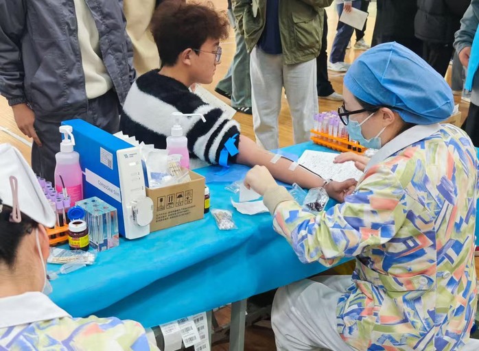 青春润泽生命,热血无限蔓延。为深入贯彻落实《中华人民共和国献血法》,进一步弘扬“奉献、有爱、互助、进步”的志愿服务精神,近日,校团委联合徐州市血液中心在两校区开展了“热血青春书大�爱心奉献绽光芒”无偿献血活动。广大师生踊跃参加,累计献血量达11.41万毫升�