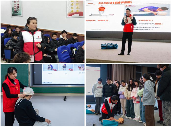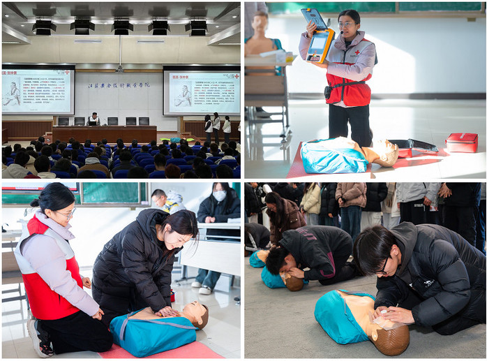 此次培训旨在通过专业培训,使学生掌握基本的急救知识和技能,培训内容丰富且实用,涵盖了心肺复苏(CPR+AED)和海姆立克自救法等关键应急救护技能。学校邀请红十字会专业人员及校内师资�50余人多场地次进行授课、讲解、示范,从专业、科学、全面的角度向学生讲解了心肺复苏紧急救护的基本原则、使用情况、具体步骤以及相关的注意事项�AED使用技术与异物卡喉处理的基本方法�