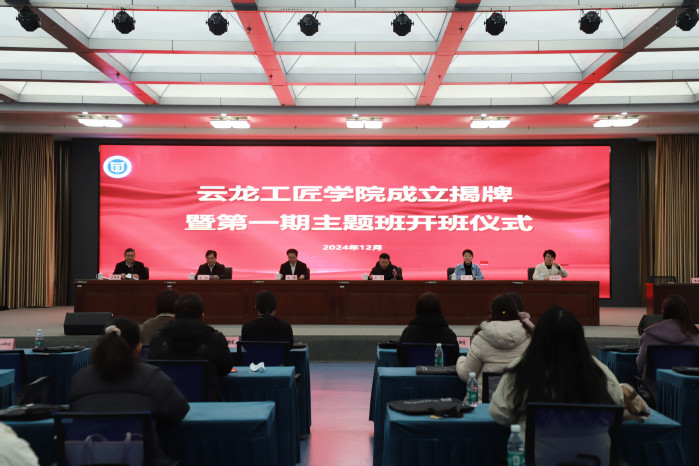 为贯彻落实《中共中央国务院关于深化产业工人队伍建设改革的意见》,搭建产业工人技术技能提升和成长成才的桥梁,培育更多的工匠人才,12�19日,云龙区总工会和学校共同举办云龙工匠学院成立仪式暨第一期主题班开班。徐州市总工会党组成员、副主席徐涛,学校副校长魏勇,中共云龙区委副书记李强,学校党委委员、工会主席薛莲,云龙区人大常委会副主任、区总工会主席王军清,云龙区总工会党组书记、副主席王露萍及双方有关人员参加仪式�