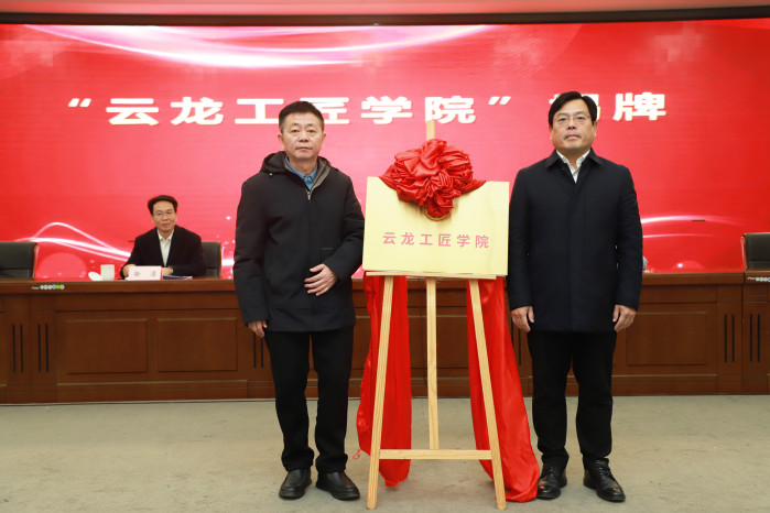 副校长魏勇和中共云龙区委副书记李强共同为云龙工匠学院揭牌