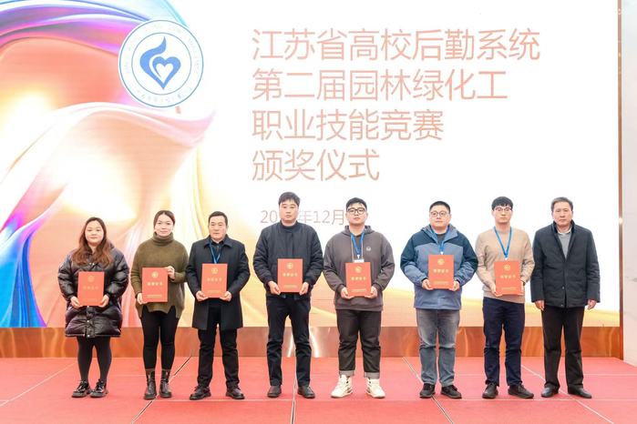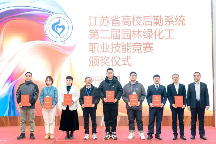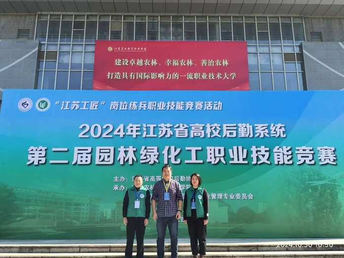 为进一步提升我省高校后勤物业绿化服务质量与管理水平,全面展现我省高校后勤队伍的专业技能与职业素养,近日,江苏省高等学校后勤协会主办的“第二届江苏省高校后勤系统园林绿化工职业技能竞赛�在江苏农林职业技术学院落下帷幕。我校后勤服务中心教职工郑友亮、冷晴晴代表学校参赛,两人凭借扎实的技艺和认真的工作态度,有条不紊地完成了园林绿化理论和实操各项考核项目,在一众选手中脱颖而出,获得江苏省高等学校后勤协会授予的“江苏省高校后勤园林绿化技能之星”称号�