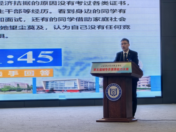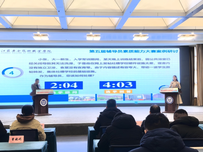 本届大赛参照江苏省高校辅导员素质能力大赛赛制进行,决赛包括案例研讨和谈心谈话两个环节。学生工作处、团委相关负责人、二级学院党总支副书记、全体辅导员观摩了比赛�