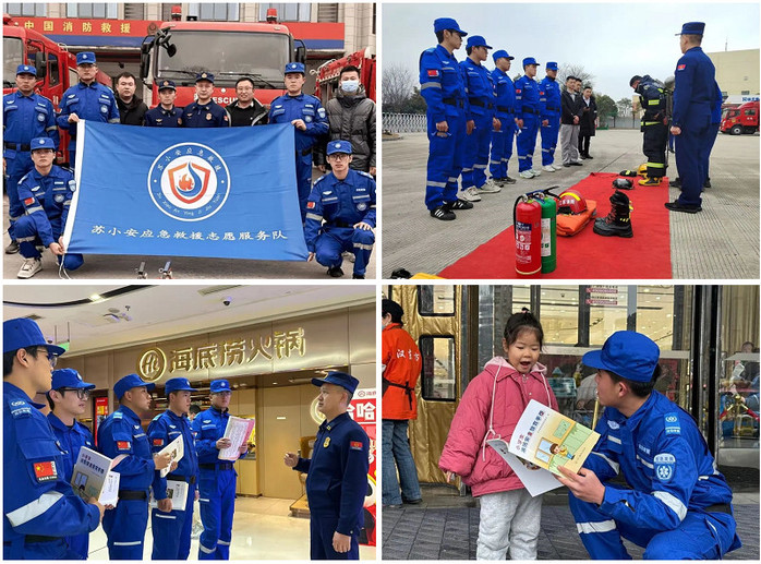 工业安全与职业健康学院“苏小安”应急救援志愿服务队携手徐州市云龙区消防救援大队,共同开展雷锋月志愿服务活动。队员们来到消防救援大队,了解消防器材的使用方法和维护保养知识以及不同消防车辆的救援功能。队员和消防员们共同走进万达广场,为部分商家工作人员展示灭火器的使用方法及以突发事件应对的自救、急救方式方法。现场,服务队队员们还为小朋友们发放了消防安全教育手册�
