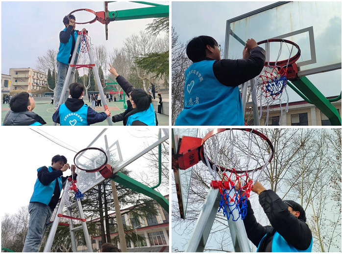 智能制造与应急装备学院组织志愿者们开展“我为球场装篮网”学雷锋志愿服务活动,完善运动设施。志愿者们在确保安全的情况下分别爬上梯子,将原本已经老化损坏的篮网进行更换与加固,切实提升同学们的日常运动体验,同时举办“雷锋故事新编”创意大赛、“寻找身边的雷锋”摄影比赛,用特色活动记录流淌在校园中的点滴温暖?/span>