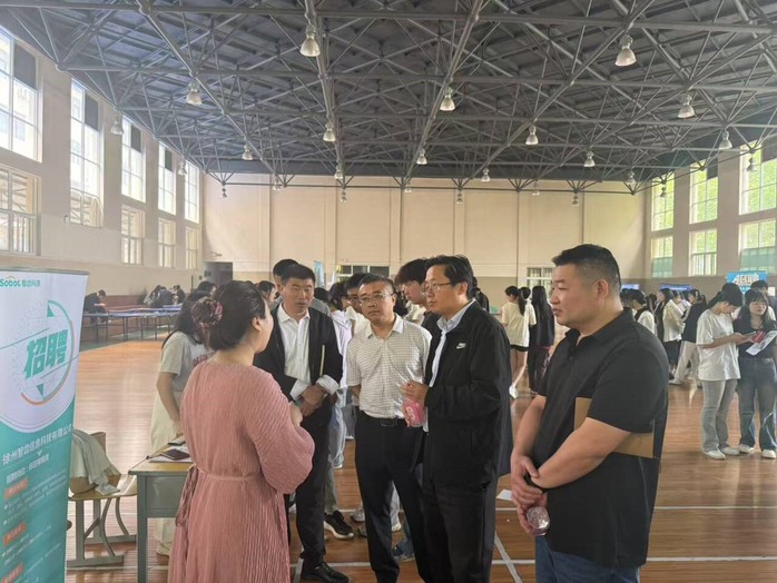 为深入贯彻落实党中央、国务院关于实施就业优先战略促进高质量充分就业的决策部署,深化产教融合,搭建校企人才输送桥梁,助力学生高质量充分就业,5?5日,网络与信息安全学院专场校园招聘双选会在贾汪校区体育活动中心顺利举行。副校长吉智,就业指导服务中心负责同志莅临双选会现场进行指导?/span>